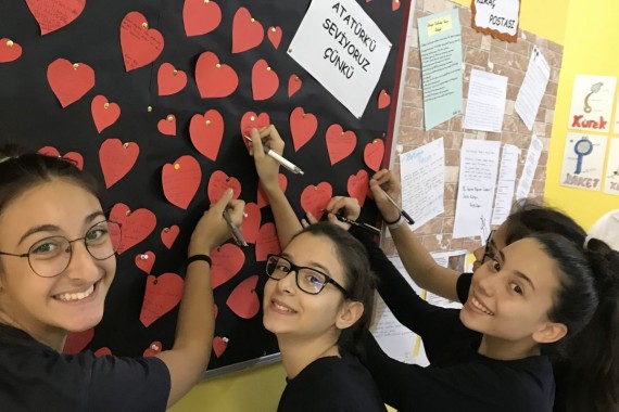 Kasım ayının ilk haftası yapılan çalışmada ortaokul öğrencileri, milli mücadelenin en büyük kahramanı ile ilgili düşüncelerini ve ona olan sevgilerini, kendi kestikleri kalplere yazarak dile getirdiler.